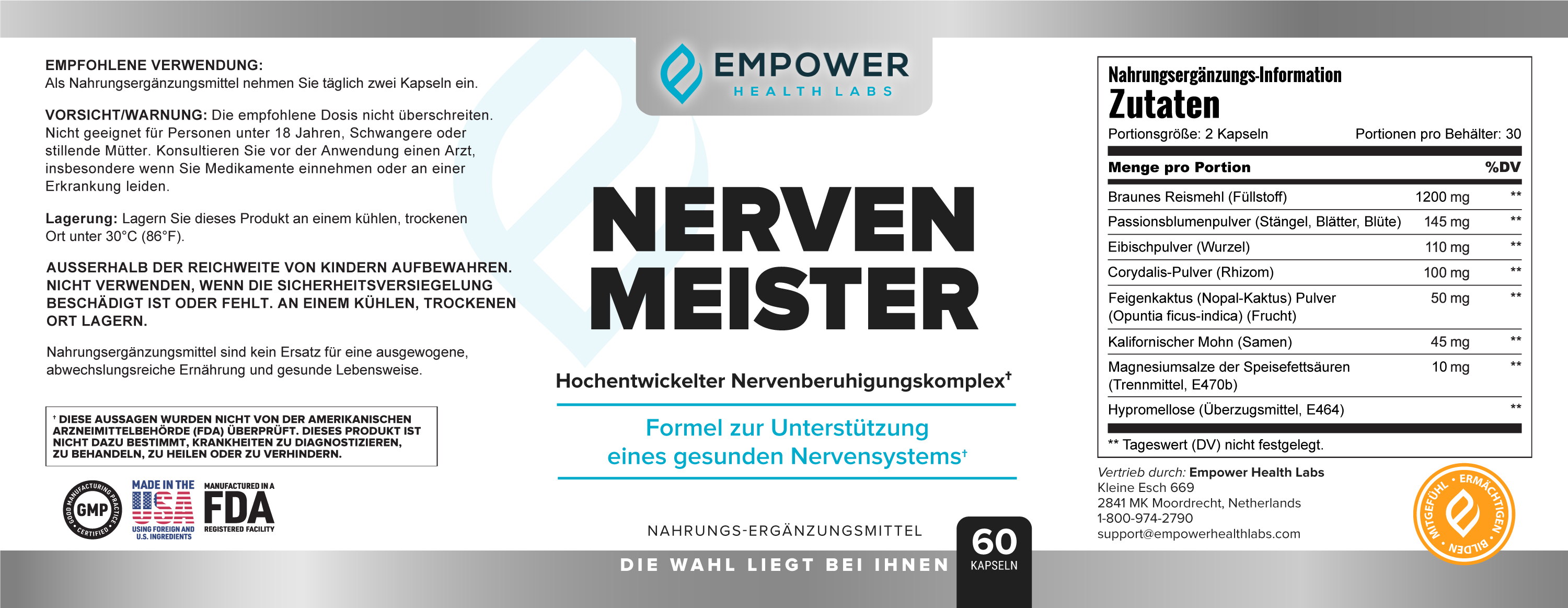 NervenMeister ist zwei Jahre lang haltbar, so dass Sie sich keine Sorgen machen müssen, dass sie ablaufen, wenn Sie mehrere Flaschen kaufen.